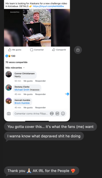 Why is Mr. Beast going to Kotzebue?